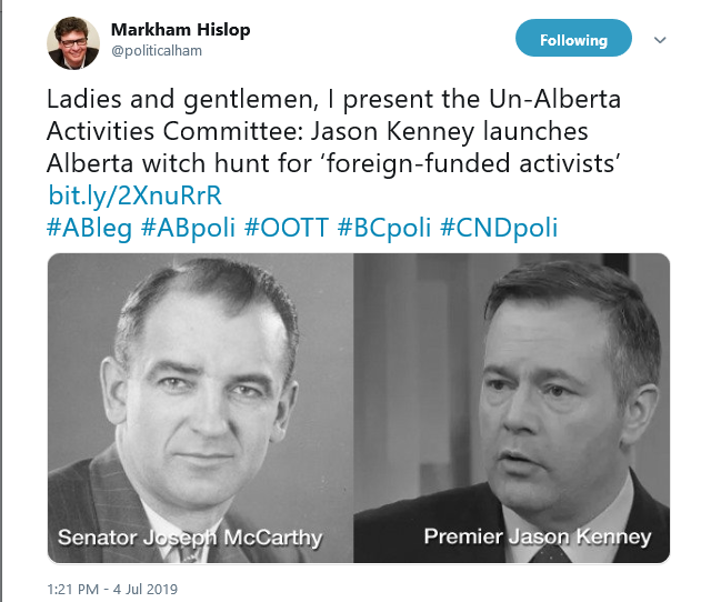 Jason Kenney launches the Alberta witch hunt for ‘foreign-funded activists’
